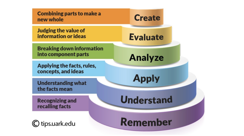 University of Arkansas. (2022, June 26). Using Bloom’s Taxonomy to Write Effective Learning Objectives. https://tips.uark.edu/using-blooms-taxonomy/